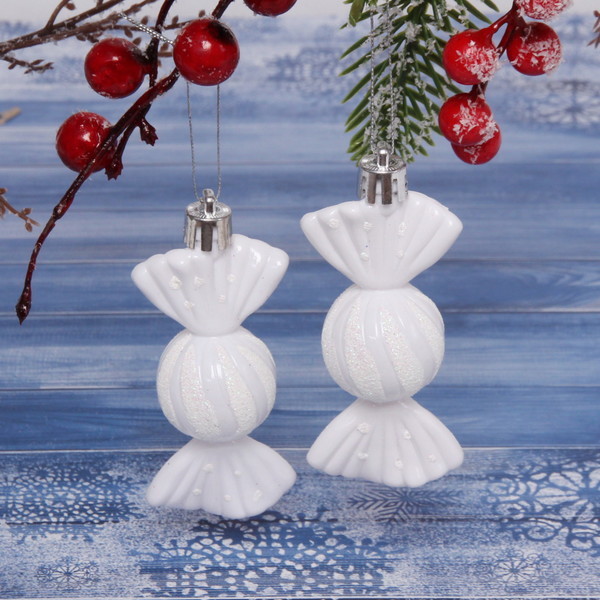 Шт. в наборе: 2 Форма елочной игрушки: Конфета Цвет: Белый Цвет (детально): Белый