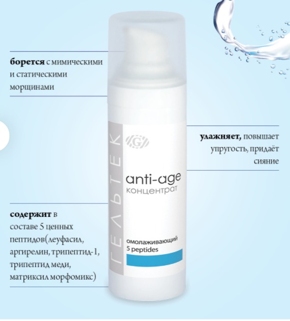 Лёгкий гелевый концентрат с мощным антивозрастным действием. В составе - 5 видов пептидов, прицельно воздействующих на все звенья формирования признаков фото- и хроностарения. Сигнальный (регуляторный... Показать описание) пептид-матрикин МATRIXYL® Morphomics™, два пептида-миорелаксанта, работающие в тандеме - Argireline® и Leuphasyl®, ремоделирующий трипептид меди, стимулирующий пептид Relistase , усиливающие действие друг друга, позволяют достигнуть максимально возможных результатов в улучшении состояния зрелой кожи. Ежедневное применение сыворотки в течение одного-двух месяцев обеспечит улучшение качества кожи на тканевом уровне: значительное увеличение упругости и эластичности кожи, уменьшение глубины морщин и тонких линий, предотвращение дряблости кожи и деформации овала. Кожа становится гладкой, сияющей, плотной, улучшается цвет лица. Запускаются процессы восстановления барьерной функции, ускоряется регенерация. Это оздоравливает кожу и делает её помолодевшей, ухоженной. Снятие напряжения с круговой мышцы глаза благотворно влияет на внешний вид периорбитальной области, уменьшая не только количество и глубину морщин, но и отечность в зоне вокруг глаз. За счет ингредиентов не пептидной природы (гиалуроновая кислота, фукогель, фитокультура стволовых клеток яблока, пуллулан), омолаживающий концентрат повышает устойчивость кожи к воздействию солнечных лучей и агрессии внешней среды, снимает раздражение, восстанавливает и поддерживает уровень увлажнённости кожи, обеспечивает оптимальные условия жизни для нормальной микрофлоры, создаёт эффект лифтинга и замедляет старение.