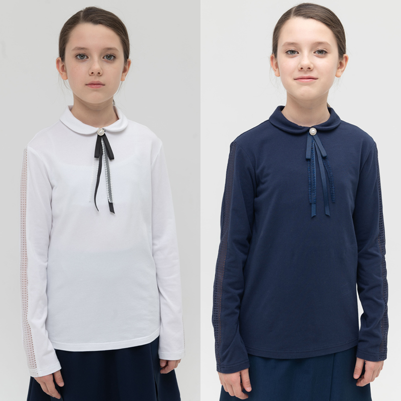 Состав: 93%хлопок 7%эластан, вставка: 90%полиамид 10%эластанОписание: Блузка для девочки Pelican. Эластичное кружево по рукаву, круглый воротник с бантом из репсовых и кружевных лент, закрепленный пуг... Показать описаниеовицей с жемчужиной и стразами - фишки этой кофточки, с которыми вещи и одежда для школы стали стильными. Удобная застёжка сзади воротника, с помощью которой легко надевается лонгслив свободного кроя и не портится причёска. В составе ткани качественный хлопок и эластан поэтому изделие хорошо пропускает воздух, долго сохраняет форму даже после множества стирок, эластичное и износостойкое, практичное для регулярного применения. Материал приятный для соприкосновения с кожей. Красивая нарядная детская одежда для девочек представлена в популярном цвете: белый. В широкой сетке маленьких, средних и больших размеров Универсальный тип ростовки для высоких, среднего роста и низких. Классно сочетается с различными предметами гардероба ребёнка. Вы можете подобрать комплект в официальном каталоге селлера. Иногда такой тип одежды называют сорочкой, рубашкой, джемпером, так как изделие обладает похожими свойствами. Подходит для кругологодичного применения: летом, зимой, весной, осенью (демисезон и в межсезонье). Одинаково практично для повседневной носки, в школу (как форму), в домашних условиях (ведь всем хочется выглядеть, как леди), для праздников и особенных событий (1 сентября, выпускной). В таком ты понимаешь - это твое, это топ! Большая размерная сетка позволит подобрать хлопковый джемпер, как для юных первоклассниц, так и девочкам подросткам среднего и старшего звена. Можно подарить дочери и внучке на День рождения, 8 марта, Новый год и Рождество. Ребёнок будет в восторге от популярной молодежной вещи!