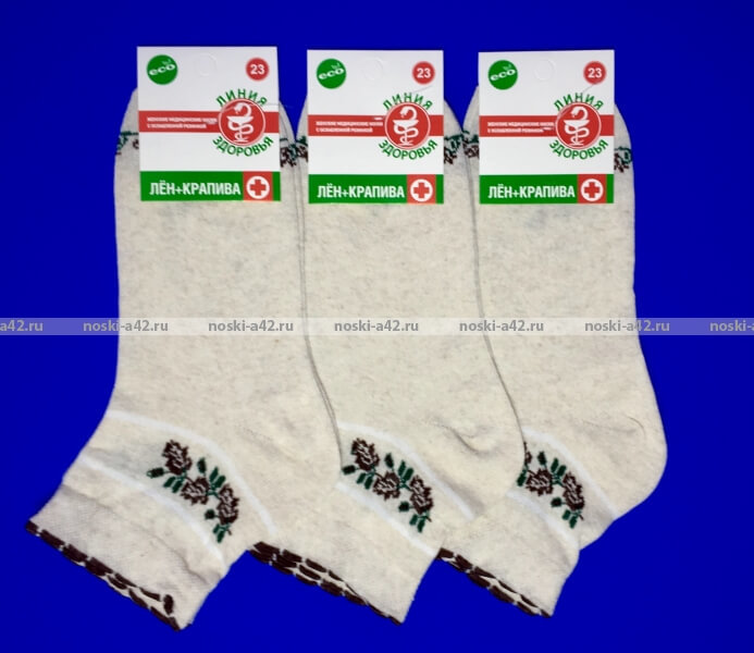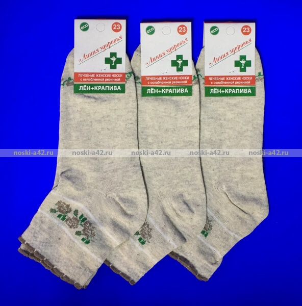 Лечебные женские носки со слабой резинкой лен с крапивой оптом. Медицинские носки для проблемных ног. В упаковке 10 пар одного размера. * Цвет лен * Состав крапива 45% + лен 23% + хлопок 29% + полиами... Показать описаниед 3%