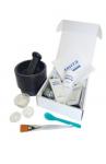 Здравствуйте. Система ухода за кожей ФРУТ-ЭНЗИМ предназначена для очищения, увлажнения, осветления и выравнивания поверхности кожи. В набор входят три компонента: энзимный пилинг, элюент-актив и эно-гель липосомальный. Основными активными веществами системы являются протеолитический фермент папаин и экстракт винограда, содержащий олигомерные проантоцианидины. Применение: 4 таблетки энзимного пилинга растолочь в ступке, залить элюент-активом (1 саше, 6 г), перемешать, дать постоять для набухания 5 минут. Полученную кремообразную белую массу нанести при помощи кисточки на лицо, избегая области век и губ. Держать на лице 15 минут, затем смыть тёплой водой при помощи спонжа. Промокнуть лицо салфеткой. Нанести эно-гель липосомальный (1 саше, 4 г). Провести лёгкий массаж до впитывания. Следующее средство можно наносить после полного впитывания эно-геля. Ступки в описании нет.