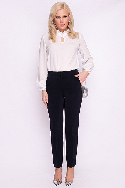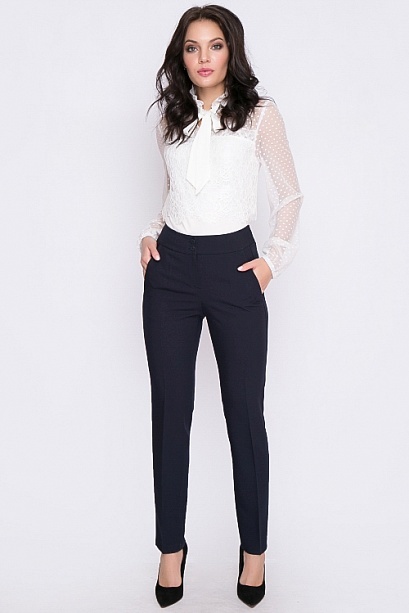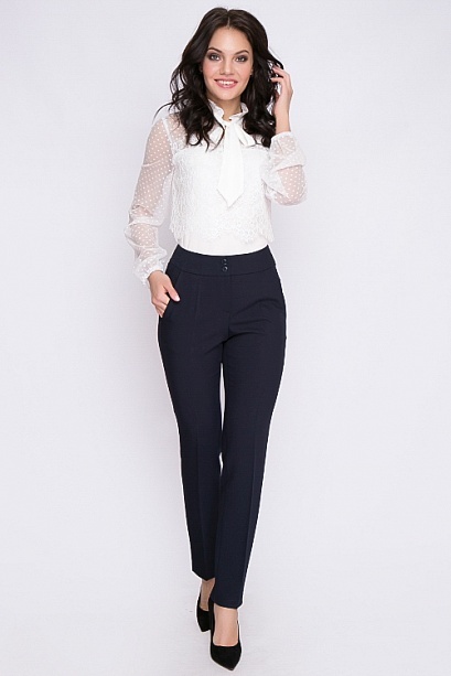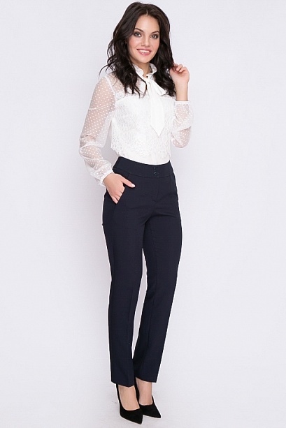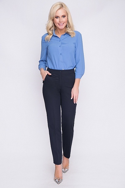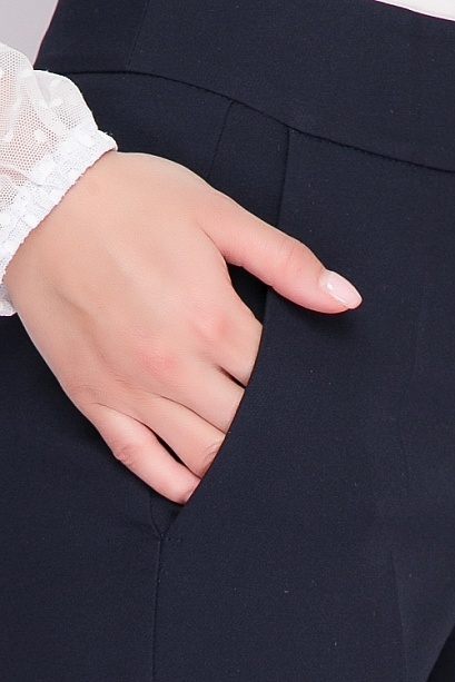 Брюки из  костюмной ткани высокого качества производства Турция прямого силуэта,со стрелками,с высокой посадкой,на притачном поясе,застегивающимся на пуговицу. По переду обработаны подрезные карманы.З... Показать описаниеастежка "гульфик" на тесьму "молния". Цвет т.синий.