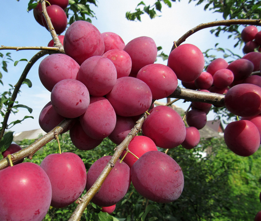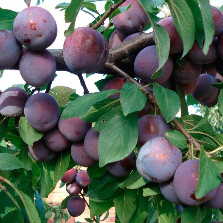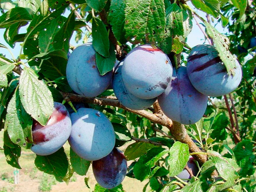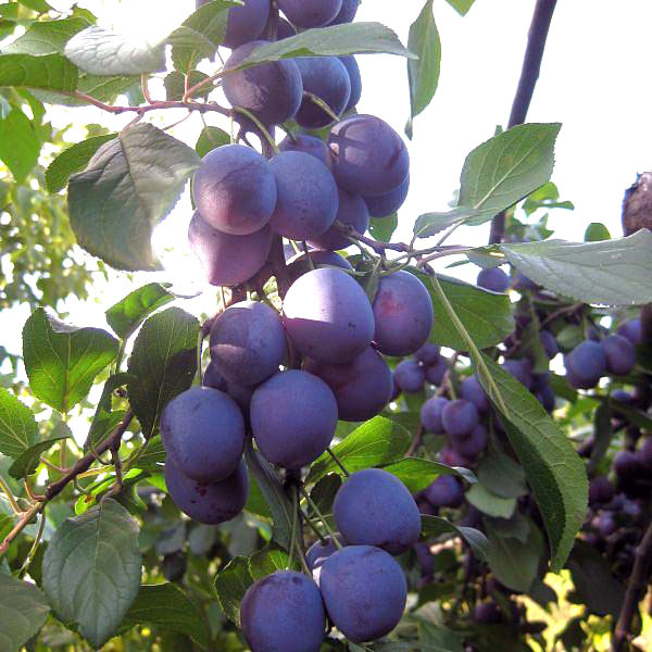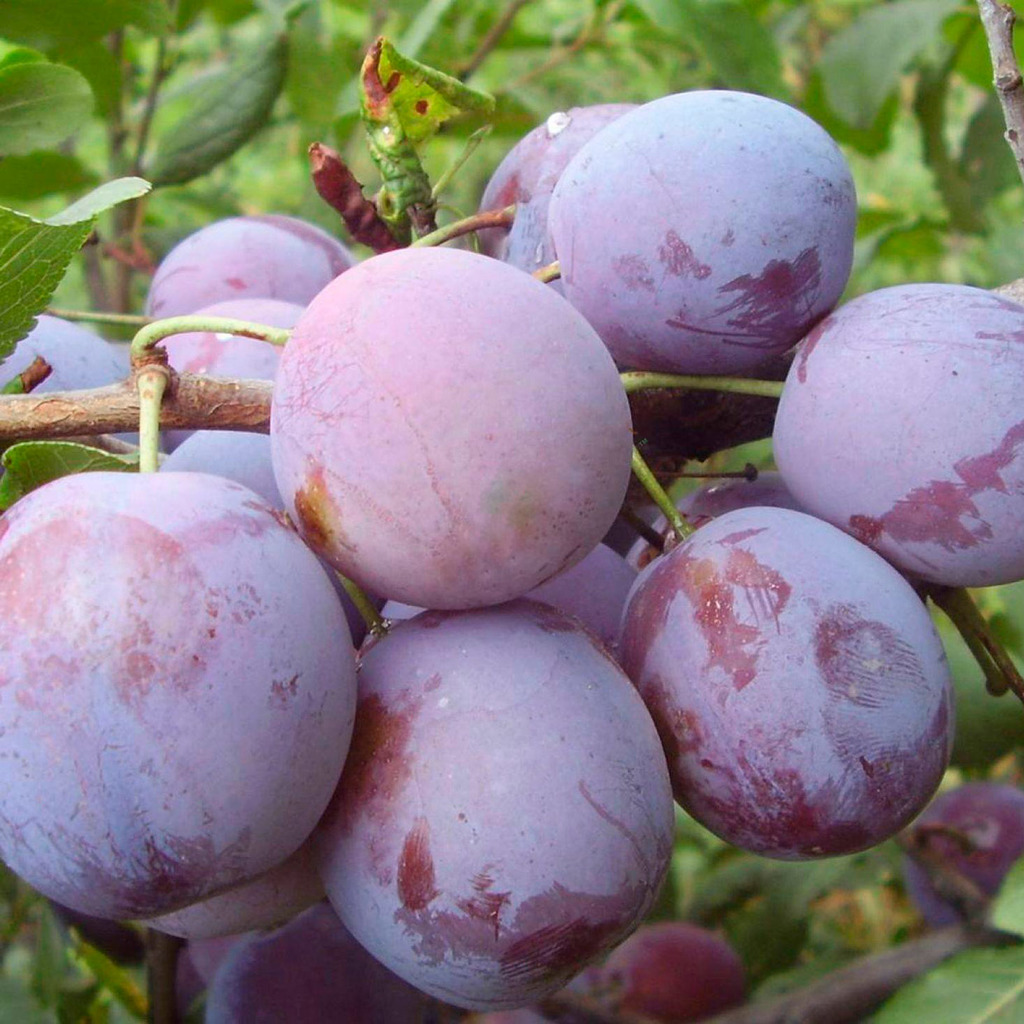 Созревает во второй половине сентября. Дерево среднерослое. Главное достоинство сливы – плоды богатырских размеров, почти шаровидной формы, весом 90-150 гр. Цвет темно-фиолетовый, с густым серебристо-... Показать описаниесиним налетом. Мякоть янтарная, волокнистая, очень плотная и сочная. Вкус мякоти плодов приятный, кисло-сладкий. Отличительная особенность плодов заключается в том, что при хранении вкус плодов улучшается. В плодоношение сорт вступает на третий год после посадки. Хорошая зимостойкость до -30°C. Средняя устойчивость к заболеваниям.