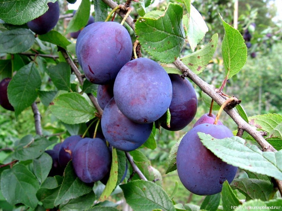 Среднего срока созревания. Деревья среднерослые, высотой 3-5 м. Плоды слегка вытянутой формы, размером до 4 см в ширину и 5,5 см в длину. Цвет кожуры практически всегда тёмно-синий. Во вкусе венгерки ... Показать описаниепреобладает сладость. С годами вкусовые качества улучшаются. Отличается высокой способностью переносить засуху и сильные морозы. Повреждённые деревья быстро восстанавливаются. Обладает прекрасным иммунитетом к болезням и вредителям.