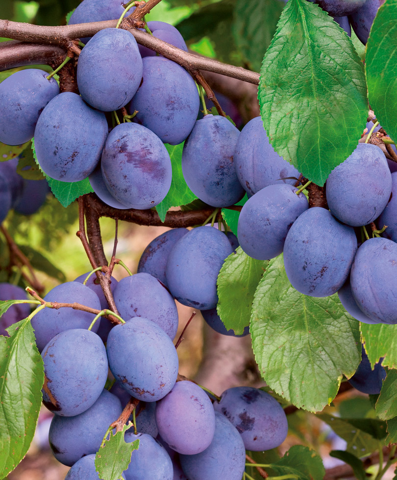 НОВИНКА Сорт позднего срока созревания. Дерево вырастает сильнорослым и имеет раскидистую крону средней густоты. Овальные плоды около 50–60 г. У них тёмная фиолетовая кожица с заметным восковым налёто... Показать описанием. Мякоть плотная, жёлто-зелёная, сладкая с кислинкой. Внутри плодов находится легко отделяемая косточка среднего размера.