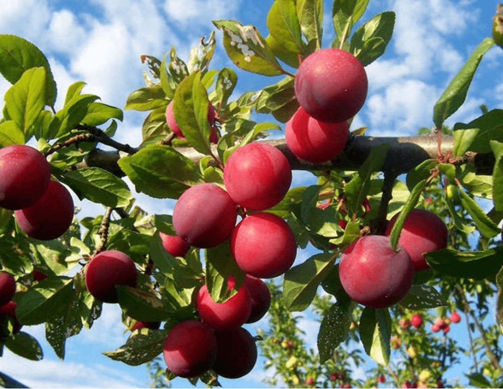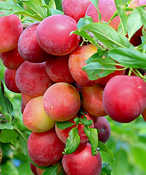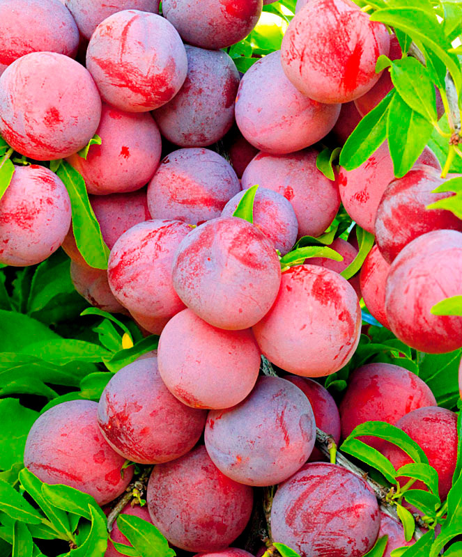 НОВИНКА ССорт среднего срока созревания. Деревья среднерослые – достигают в высоту 4 м. Форма плодов круглая. Кожица имеет красный окрас, но по мере созревания наливается всё более тёмными, насыщенным... Показать описаниеи оттенками бордового. Сверху её покрывает густой слой сизого воскового налёта. Внутри находится контрастно жёлтая мякоть. Размеры варьируются от средних до крупных, масса слив составляет 30-40 гр. Вкус плодов гармоничен под стать названию – в нём сочетается сочность и сладость мякоти с лёгкой кислинкой кожицы.