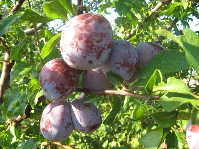 Созревани происходит в средние сроки. Дерево слаборослое. Плоды крупные, средней массой 41,5 г. Основная окраска кожицы зеленая, покровная темно-фиолетовая, густо покрытая голубоватым восковым налетом... Показать описание. Мякоть тускло-буровато-желтая, плотная, при перезревании становится мягкой, сочная. Вкус сладкий с легкой кислотой, приятный. Популярна своей невероятной морозостойкостью.