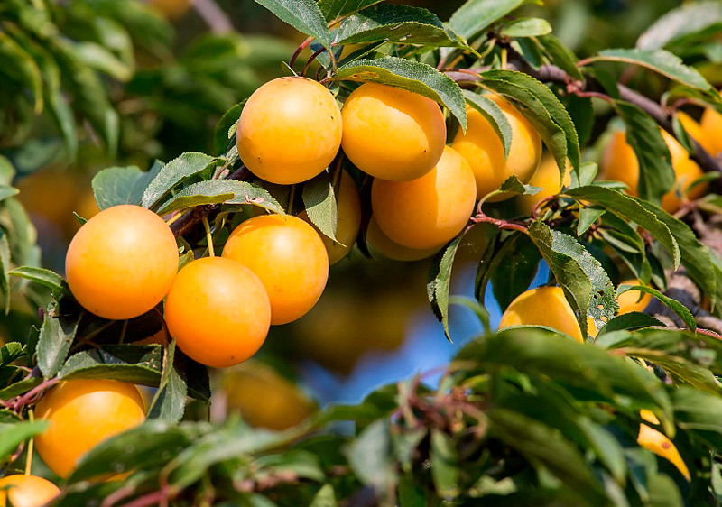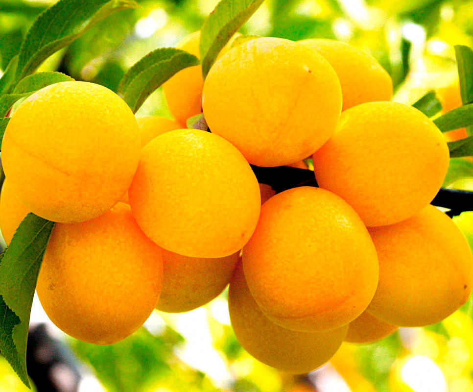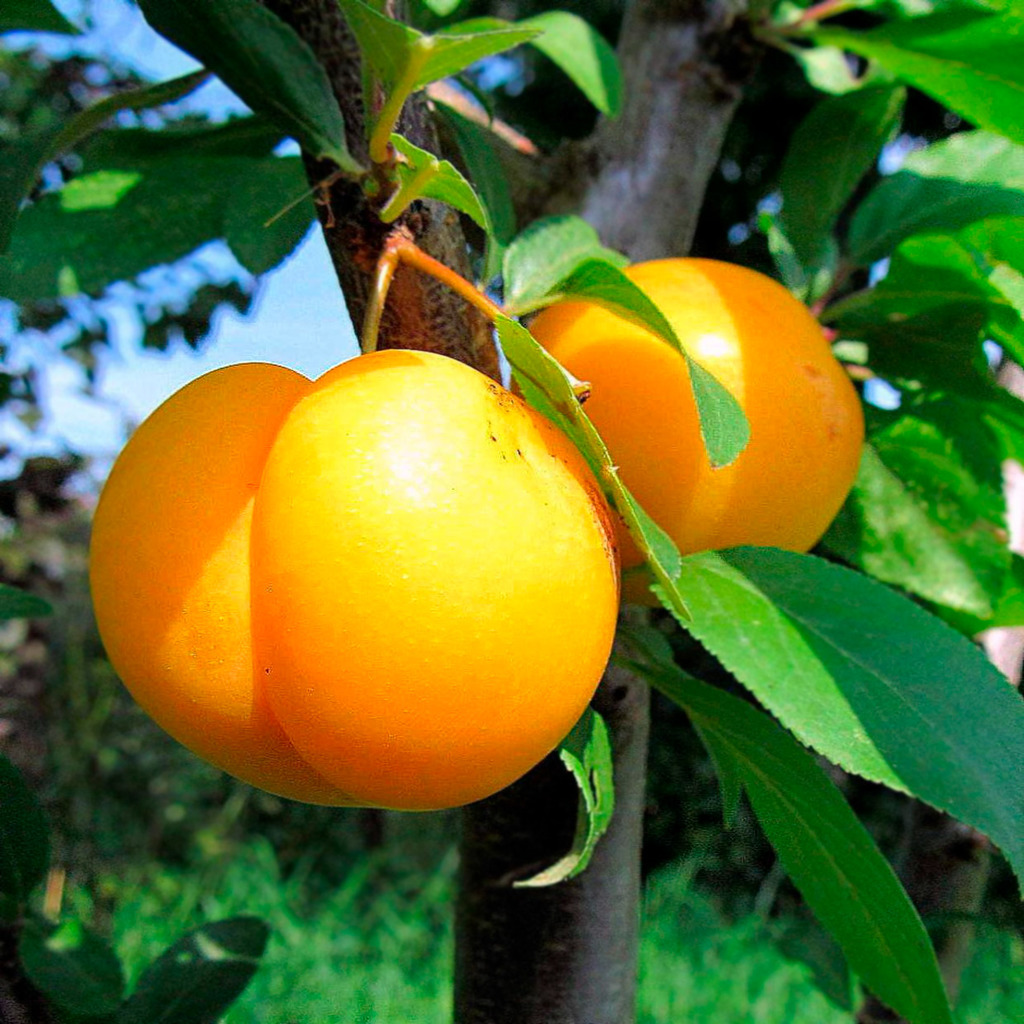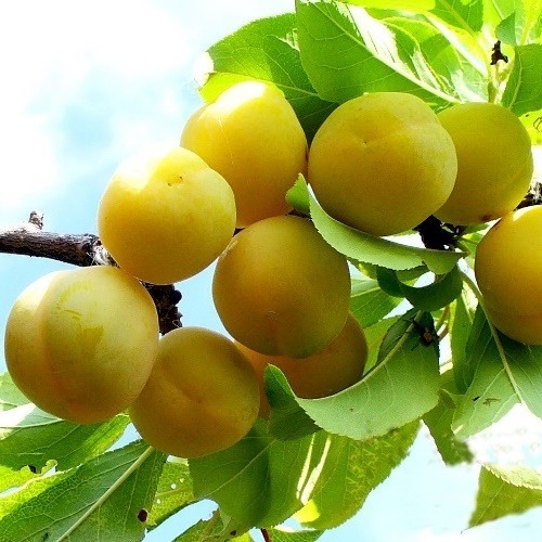Среднеранний сорт. Дерево среднерослое, вырастает до 3 метров высотой. Плоды алычи овальные, яйцевидные, весом 12 г. Вкус десертный, кисло-сладкий. Цвет ярко-жёлтый с оранжевым оттенком. Мякоть сочная... Показать описание с тонкими волокнами, жёлтого цвета. Достоинствами являются ежегодное стабильное плодоношение, отличный вкус и товарный вид ягод.