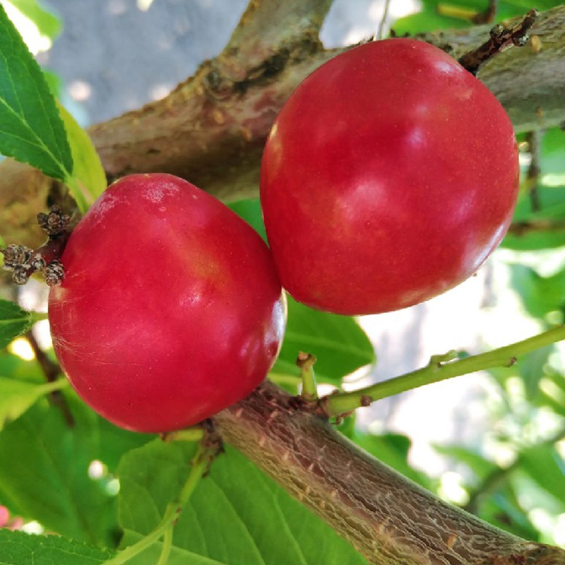 Среднепозднего срока созревания. Дерево среднерослое, до 3 м в высоту. Плоды средним весом до 30 г., они тёмно-малинового цвета, кожица с сильным налетом воска. Мякоть темного цвета карминно-красная,с... Показать описаниеочная. Вкус сладкий,приятный, с ароматом. Косточка легко удаляется. Сорт самоплодный, устойчивый к болезням.