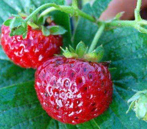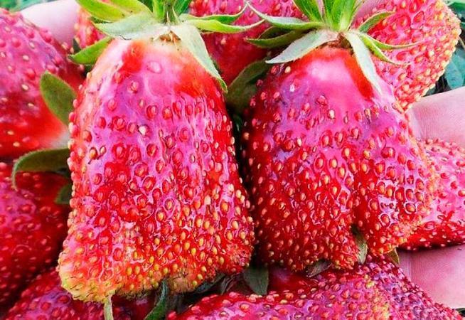 Сорт нейтрального дня, ремонтантный, плодоносит до конца сентября. Ягоды ровные, идеально гладкие, конической формы, среднего и крупного размера (25-40 г), не мельчают от первого до последнего урожая.... Показать описание По цвету розово-красные, с блестящей кожицей. Мякоть с высоким содержанием сахара, плотная, сочная, с выраженным клубничным ароматом.