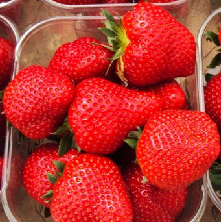 Ранние сорта. Сорт голландской селекции, получен от скрещивания сортов Gorella x Chandler. Сорт очень раннего срока созревания. Куст прямостоячий, хорошо облиственный, хорошо размножается, поскольку о... Показать описаниебразует большое количество усов. Ягода крупная, при первом сборе до 40-50 грамм, равномерная, конусовидной формы, ярко красного цвета, сочная, плотная, вкус сладкий с лёгкой кислотой. Отличается уникальным карамельным вкусом. Транспортабельность хорошая. Зимостойкость высокая. Устойчив к вертициллёзному увяданию и мучнистой росе.