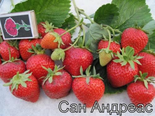 Ремонтантные сорта. Сан Андреас рассада клубники нейтрального светового дня. Подходит для выращивания в континентальных районах. Сан Андреас SanAndreas клубника нейтрального светового дня, с хорошими ... Показать описаниепоказателями урожайности до 3 кг.. Ягоды крупные, сладкие, темно красного цвета с блеском. Куст сильный с крупными листьями, усообразованость средняя.