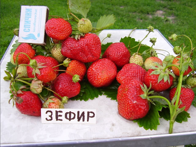 Суперранний сорт земляники садовой (клубники). Отличается крупными размерами ягод, высокой урожайностью, дружным созреванием. Растения невысокие, прямостоячие.Ягоды крупные, тупоконической правильной ... Показать описаниеформы, широкоокруглые, ребристые. Мякоть ярко-красная, средней плотности, очень ароматная. Вкус у Зефира десертный, очень сладкий, с приятными нотками кислинки. Средняя масса ягод составляет примерно 25?30 грамм.