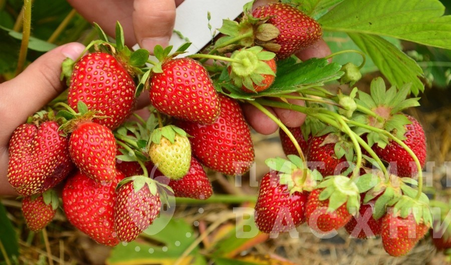 Средние сорта. Новинка. Первоклассный сорт с очень крупными плотными ягодами, насыщенно-кирпично-красного цвета с классическим вкусом земляники. Минимальные затраты сил на сбор урожая, так как ягоды о... Показать описаниечень крупные, вес отдельных плодов до 70 гр. Мощное выносливое растение устойчиво к заболеваниям корней. Недостатков у данного сорта не выявлено.