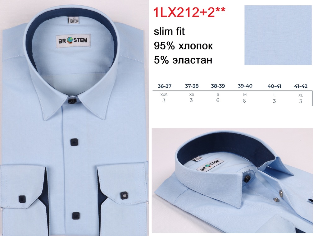1LX212+6X** Сорочка подростковая длин. рукав притал., светло-синий, BROSTEM (1) Вопросы по товару