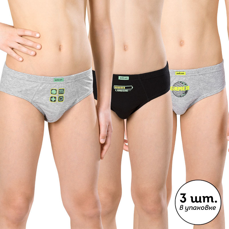 Состав: низ: 100%хлопок, низ2: 100%хлопок, низ:3 100%хлопокОписание: Выбирая бельё для своего ребёнка, любая мама заботится о его качестве и о том, чтобы ребёнку было комфортно. Комплект (3 шт.) слипо... Показать описаниев для мальчика полностью соответствует этим запросам. Ткань изделия — 100% хлопок. Трусы приятны на ощупь, отлично пропускают воздух, кожа ребёнка дышит. Качественный материал и анатомически правильный крой гарантируют комфортную посадку белья на теле — ребёнку удобно на протяжении всего дня. Мягкая широкая резинка в поясе исключает трение и дискомфорт. Слипы представлены в классическом чёрном цвете, а также в оттенке "серый меланж". Оба цвета практичны и хорошо подходят под любую одежду. Трусы украшены принтами геймерской тематики — любой мальчишка будет в восторге! Принты мягкие и плотные, прекрасно переносят многочисленные стирки. Идеальный выбор детского белья для повседневной носки и спорта. Станет замечательным подарком, который способен вызвать искреннюю радость у каждого ребёнка, оставив незабываемые воспоминания о любом празднике и принося массу удовольствия каждый день.