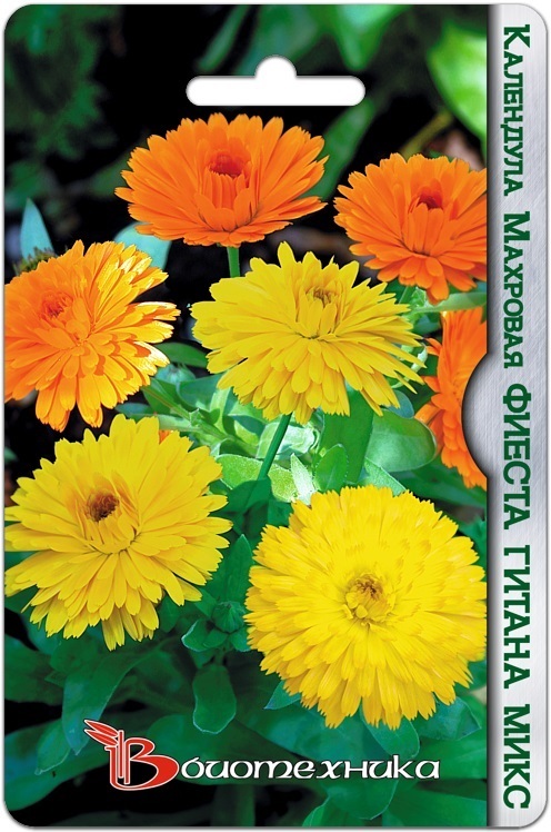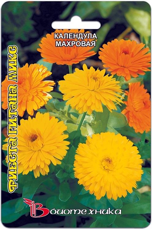 Яркая смесь неприхотливых однолетних ноготков высотой 25-30 см. Цветки крупные, махровые, диаметром 6-8 см, окраска лепестков от лимонно-желтого до кирпично-оранжевого цвета. Используется для оформлен... Показать описаниеия клумб, бордюров, балконных ящиков. При посадке под деревьями и кустарниками отпугивает вредителей. Очень проста в выращивании, возможен прямой посев в грунт весной или в сентябре-октябре под зиму. При рассадном способе выращивания посев проводят в конце марта – начале апреля, в этом случае растение начинается в июне. Предпочитает хорошо освещённые участки.