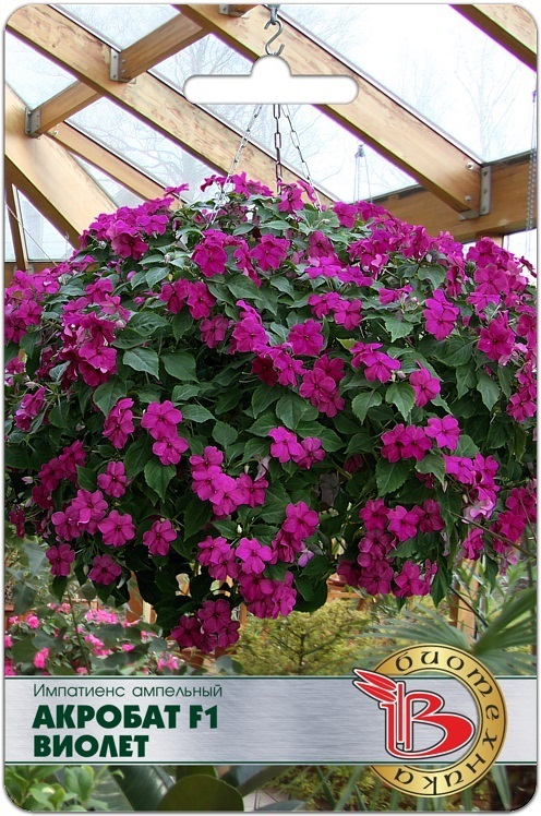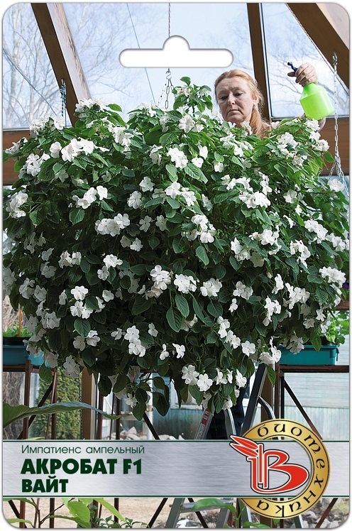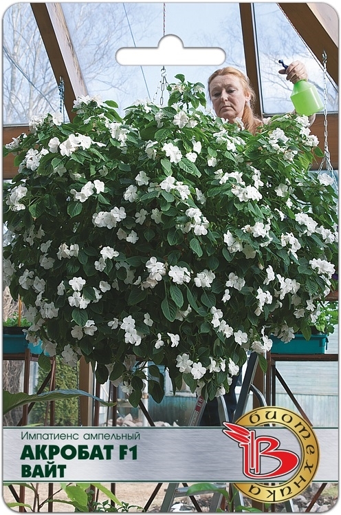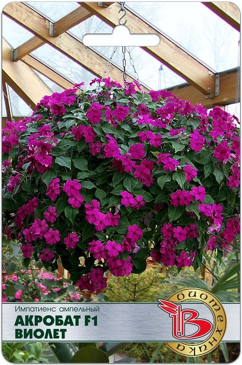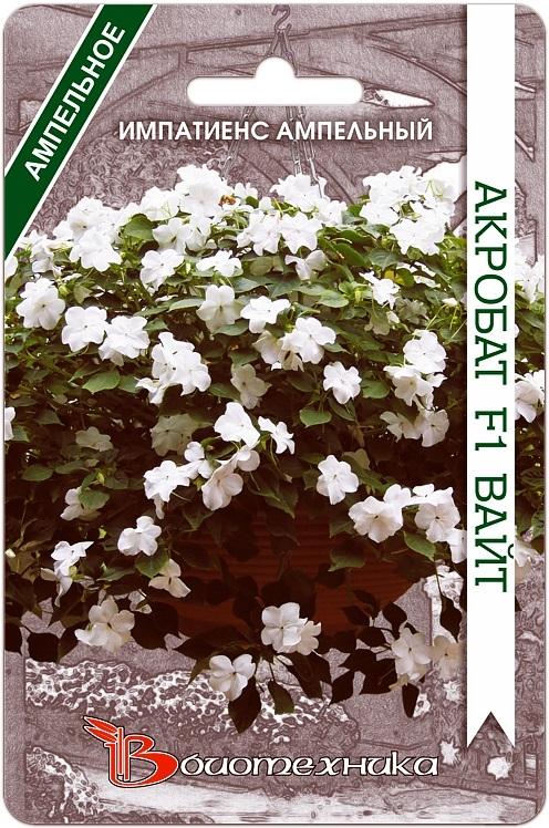 Профессиональный импатиенс для подвесных корзин, выращиваемый из семян. Ранее гибриды такого высокого уровня были доступны только из черенков! Растения серии Акробат отличаются очень мощным ростом – о... Показать описаниедного растения достаточно для формирования роскошной подвесной корзины диаметром 50-60 см. Сильно ветвящиеся побеги длинной до 80 см. Большое количество крупных постоянно обновляющихся цветков. Посев: февраль – март, семена слегка придавливаются в грунт или присыпаются слоем грунта не более 2-3 мм. Прорастание: 10-15 дней при 20-25?С. Пикировка: 2-3 пар настоящих листьев в горшки диаметром 6-8 см, после этого объёма растением перевалка в горшки объёмом 0,6-0,8 литра. Рассада: 7-8 недель при 18-20 ?С. В процессе выращивания рассады необходима досветка 14-16 часов. Высадка на постоянное место: первая декада июня. Начало цветения: на 15-16 неделе. Цветет чрезвычайно долго, с июня до заморозков в октябре-ноябре. Рекомендуется выращивать в полутени, для одного взрослого растения потребуется от 10 литров грунта. Подкормка комплексным минеральным удобрением с микроэлементами.
