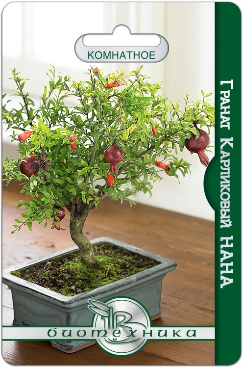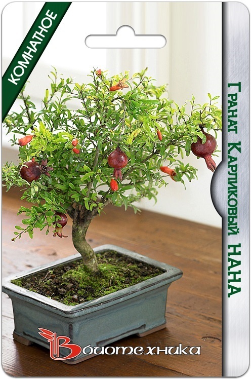 Представляет собой, как бы «уменьшенную копию» садового граната, с мелкими листьями, цветками и плодами. Вырастает до 1 м в высоту. Цветки бывают двух типов: кувшинообразные с длинными пестиками, обра... Показать описаниезующие плоды, и колокольчатые с короткими – плодов не образующие. Последних значительно больше, 90% и, соответственно, всего 10 % плодоносных. Цветки самоопыляемые. Стерильные цветки опадают быстро, плодоносные «живут» 6-10 дней. Размер цветков до 2 см в диаметре и до 4 см в длину. После цветения, осенью, у карликового граната завязываются маленькие круглые плодики с плотной, но тонкой кожурой, цветом от светло-оранжевого до бордово-красного, в диаметре они не превышают 4-5 см. Плоды покрыты твёрдой кожурой, под которой находятся семена, «обёрнутые» сочной мякотью тёмно-красного цвета. Плоды съедобны, на вкус кислые. Посев: на глубину 1 см. Грунт не должен быть переувлажнен или пересушен. Прорастание: 2-3 недели при температуре +25-28°С. Пикировка: после того, как сформируется основной ствол с боковыми побегами, в горшки не менее 100мл. После того, как корни освоят весь объем горшка, проводится перевалка в объем не менее 500мл. Окончательный объем горшка зависит от условий выращивания. Уход: разместить на солнечном месте. В зимний период сократить полив и переставить в более прохладное место. Необходимо ежегодно делать обрезку для формирования декоративной кроны. Раз в два месяца делать подкормку полным минеральным удобрением (исключая зимний период покоя).