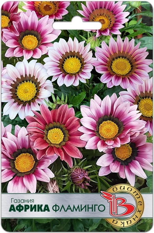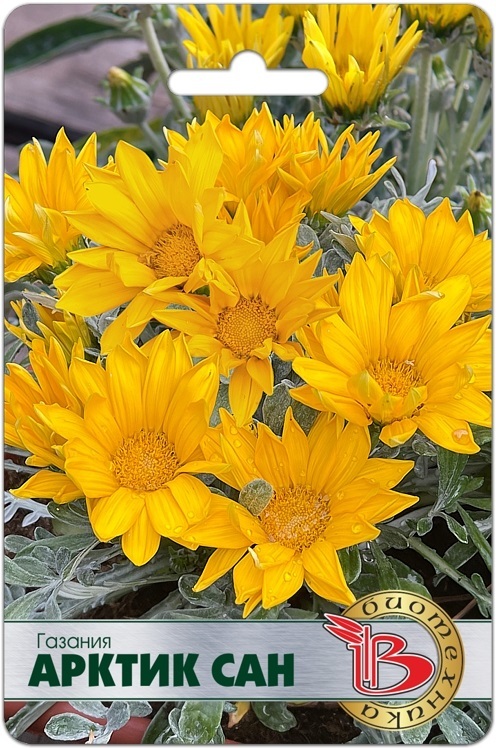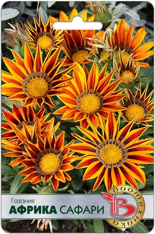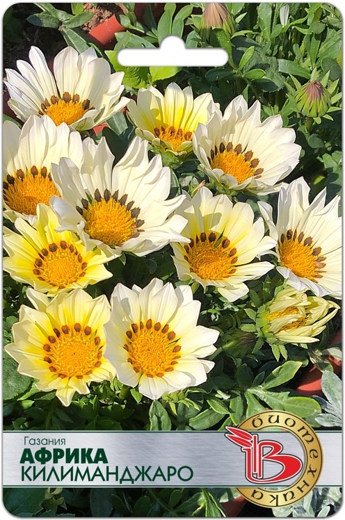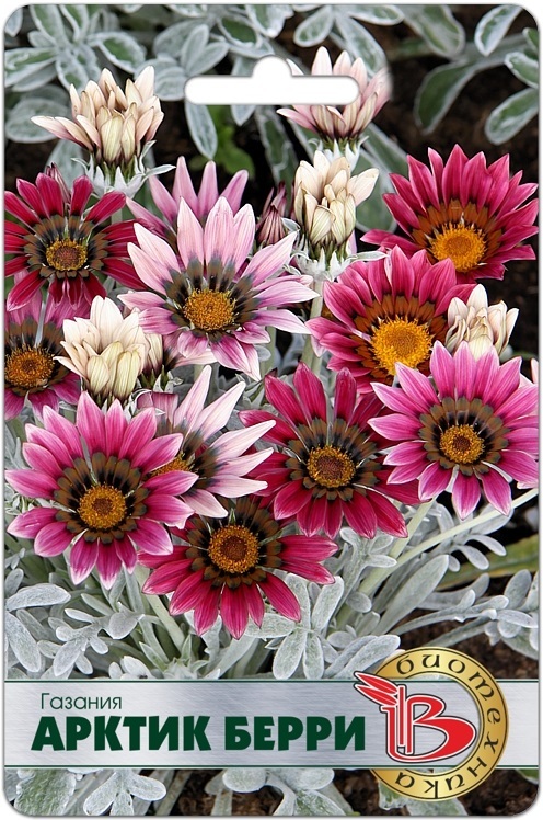 Яркие цветы этой серии резко контрастируют с серебристо-белой листвой. Растения нейтральны к длине светового дня. Цветение длительное, отцветшие цветки постоянно сменяются новыми. Высота растения 20 с... Показать описанием., диаметр цветков 7-8 см. Использование очень широкое – оформление клумб, подоконники, горшки и контейнеры. Наиболее эффективен рассадный способ выращивания. Посев: начало-конец марта в рыхлый, хорошо дренированный субстрат, слегка прикрыв семена грунтом. Прорастание: 10-12 дней при температуре 20-25°С. Пикировка на стадии 2-3 настоящих листьев с дальнейшим выращиванием при температуре 15-20°С. Высадка в грунт, когда минует угроза заморозков. От посева до раскрытия первых цветков – 12-15 недель. Газания очень отзывчива на подкормки комплексным минеральным удобрением с содержанием хелатного железа и магния. Это стимулирует более длительное и яркое цветение.