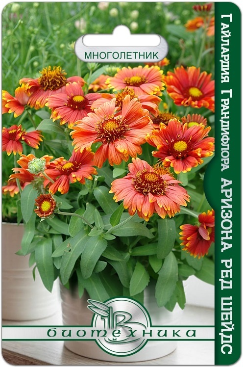 Многолетнее растение. Очень яркая и компактная форма гайлардии, высотой 25-30 см. Одна розетка формирует 6-8 цветоносов, с терракотово-красными цветками, диаметром 10-12 см. Прорастание: 14-20 дней пр... Показать описаниеи 18-20°С Рассада: 6-7 недель при 18-20 °С Высадка в открытый грунт: первая декада июня Начало цветения: середина июля-август Возможен безрассадный способ выращивания прямым посевом в открытый грунт, в этом случае начало цветения сдвигается на август, либо следующий год. Требуется прореживание растений.