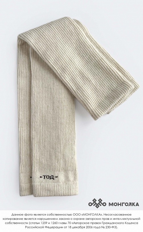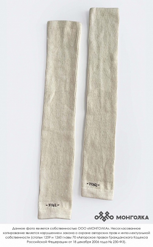 Шерстяные гетры сохраняют женское здоровье и позволяют ногам оставаться в тепле в любое время года. Выбирая теплые гетры стоит отдавать предпочтение натуральным материалам — изделия из 100% шерсти мон... Показать описаниегольской овцы впитывают излишнюю влагу, при этом оставаясь сухими и продолжая согревать. Благодаря ланолину в составе натуральный материал не копит микробы — это делает шерстяные гетры гигиеничными. Кроме этого, изделия из овчины хорошо удерживают тепло и пропускают воздух, а также отталкивают грязь. Гетры из натуральной шерсти подойдут для тех, кто любит носить короткую обувь и капроновые колготки даже в холодную погоду — их удобно снять, оказавшись в помещении. В каталоге нашего интернет-магазина представлены различные модели гетр для женщин и для девочек, доставленных напрямую из Монголии. * Производитель: Монголия, TOD * Состав: 70% шерсть монгольской овцы, 30% вискоза * Цвет: бежевый * Длина: 55 см. * Полуобхват резинки 10 см.