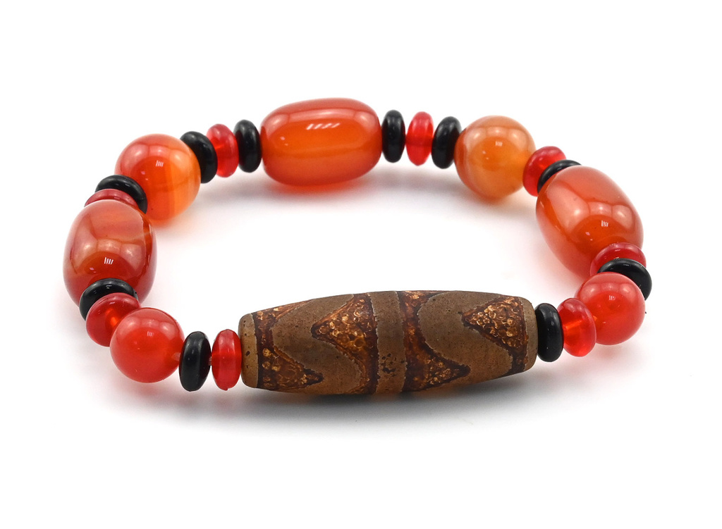 Браслет "Дзи Аристократ" бочонок 14*40мм с сердоликом бочонок 13*18мм