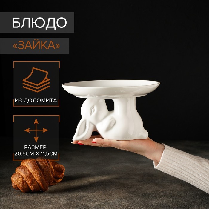 Блюдо Доляна «Зайка в золотом», 20.5?15.5?3.2 см, доломит, белоеВопросы по товару