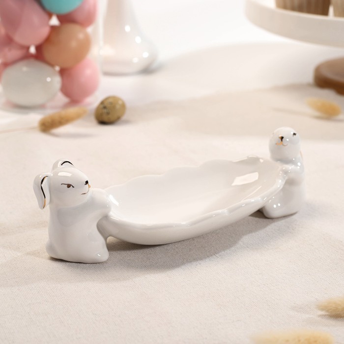 Блюдо Доляна «Зайки в золотом», 21_8_6 см, цвет белыйВопросы по товару