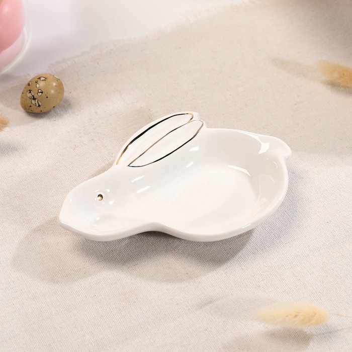 Блюдо Доляна «Зайка в золотом», 15,5_11_2,5 см, цвет белыйВопросы по товару