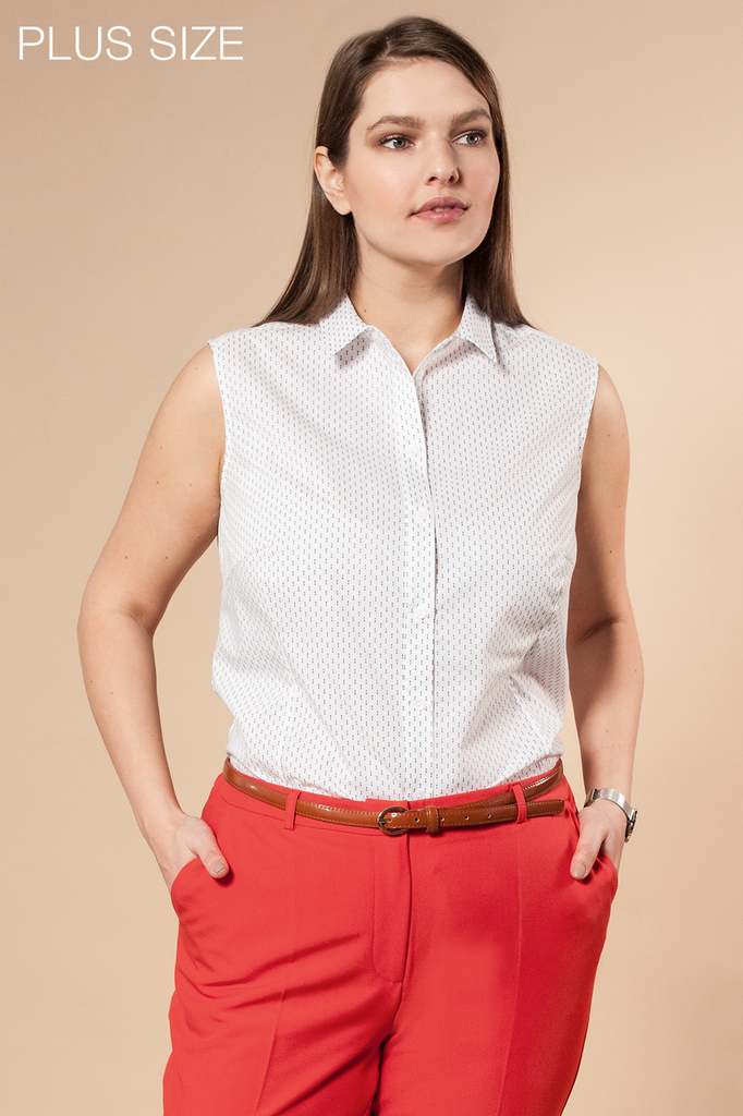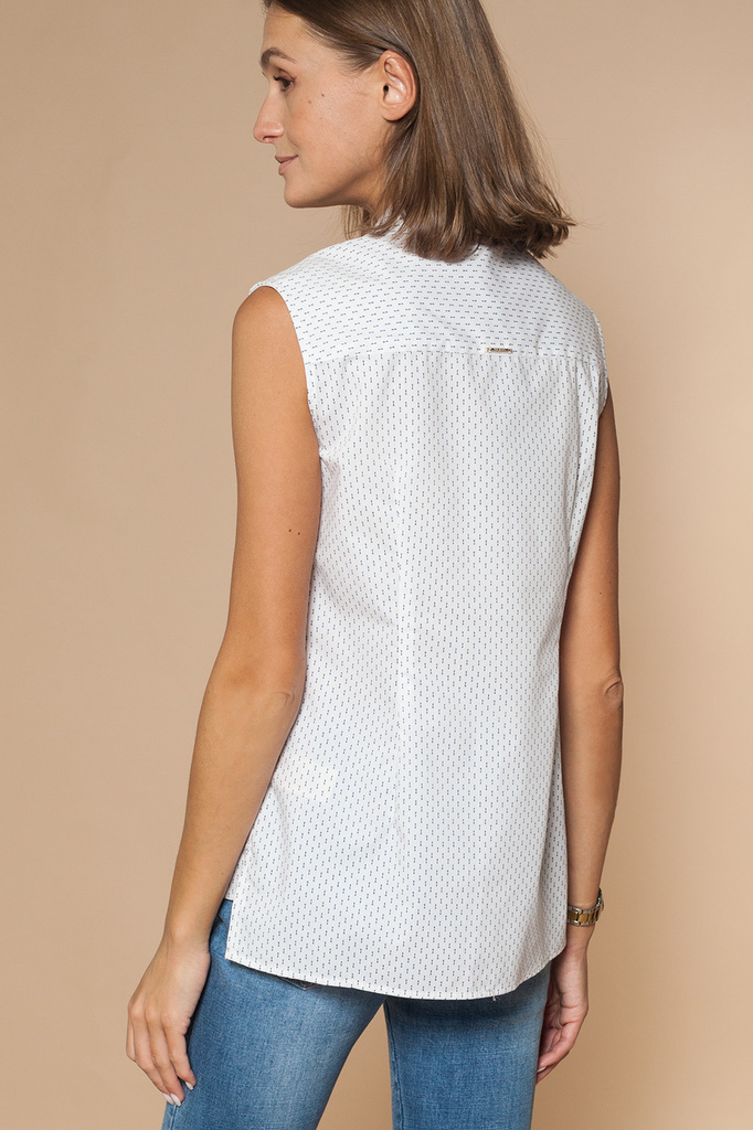 Состав: 97%Хлопок 3%ПУ Базовая блузка из хлопка со спандексом, с аккуратным принтом - отличное решение для летнего офиса, идеальный комфорт в комплектах с жакетами. Пуговицы под натуральный перламутр.... Показать описание Спинка украшена золотистым лого.