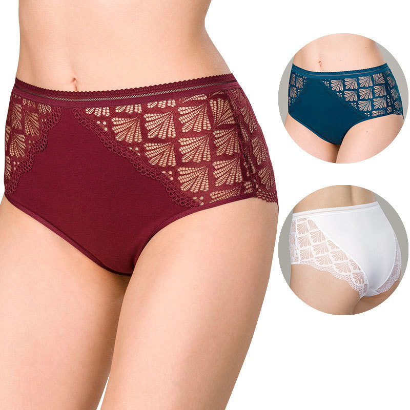 Состав: 92%полиамид 8%эластан, вставка: 90%полиамид 10%эластанОписание: Женские кружевные трусы-слипы с высокой посадкой для влюбленных в красивый образ жизни. Трусики изготовлены с минимумом швов. Кр... Показать описаниеомки по ноге и по талии подогнуты и приклеены, хлопковая приклеенная ластовица. Продуманный крой трусов создает изящный силуэт. Эластичная и мягкая ткань позволяет избежать натираний и неудобств, кожа дышит. Кружево с фестонным краем подчеркивает изящные линии тела и придает модели романтичные нотки. Нежный кружевной узор придает женственности и изысканности. Вы можете создавать разные образы по настроению - от повседневных и классических, до соблазнительных. Трусы представлены в универсальных цветах - черный, молочный, серый и пудра для консервативных девушек, а также в трендовом бордовом цвете для модниц. Широкий размерный ряд XS(42): S(44): M(46): L(48) для девочек-подростков, девушек и женщин. Для круглогодичного применения: летом, осенью, зимой, весной и демисезон. Отличный подарок подруге, сестре, маме на любой праздник или на День рождения. Выбирайте нужный размер по таблице размеров на фото. Цвет товара на экране вашего устройства может отличаться от цвета изделия вживую. Товар возврату и обмену не подлежит.