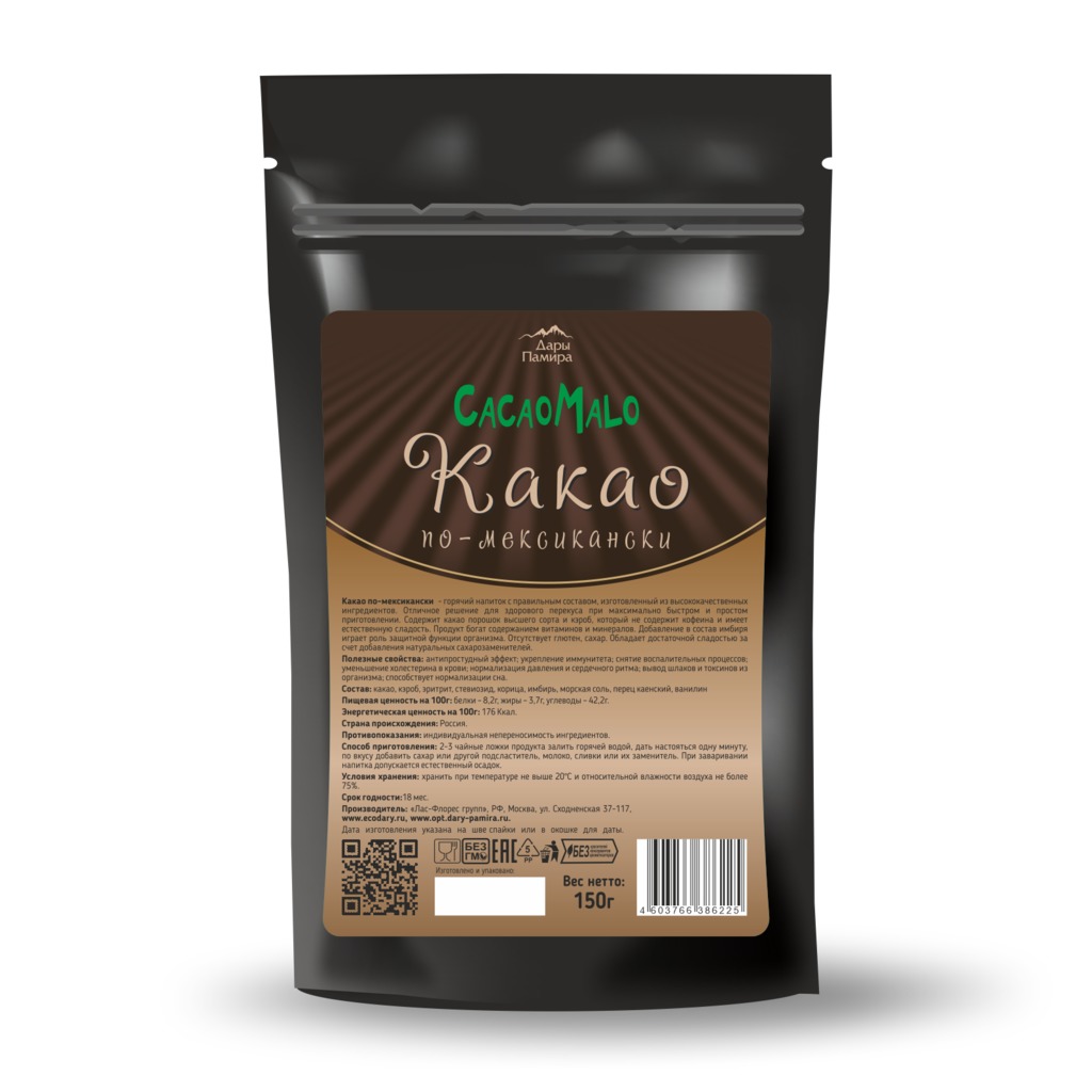 Какао по-мексикански - горячий напиток с правильным составом, изготовленный из высококачественных ингредиентов. Отличное решение для здорового перекуса при максимально быстром и простом приготовлении.... Показать описание Содержит какао порошок высшего сорта и кэроб, который не содержит кофеина и имеет естественную сладость. Продукт богат содержанием витаминов и минералов. Добавление в состав имбиря играет роль защитной функции организма. Отсутствует глютен, сахар. Обладает достаточной сладостью за счет добавления натуральных сахарозаменителей. Полезные свойства: антипростудный эффект; укрепление иммунитета; снятие воспалительных процессов; уменьшение холестерина в крови; нормализация давления и сердечного ритма; вывод шлаков и токсинов из организма; способствует нормализации сна Состав: какао, кэроб, эритрит, стевиозид, корица, имбирь, морская соль, перец каенский, ванилин Пищевая ценность на 100г: белки – 8,2г, жиры – 3,7г, углеводы – 42,2г Энергетическая ценность на 100г: 176 Ккал Страна происхождения: Россия Противопоказания: индивидуальная непереносимость ингредиентов. Способ приготовления: 2-3 чайные ложки продукта залить горячей водой, дать настояться одну минуту, по вкусу добавить сахар или другой подсластитель, молоко, сливки или их заменитель. При заваривании напитка допускается естественный осадок. Не требует варки. Условия хранения: хранить при температуре не выше 20С и относительной влажности воздуха не более 75% Срок годности: 18 мес.