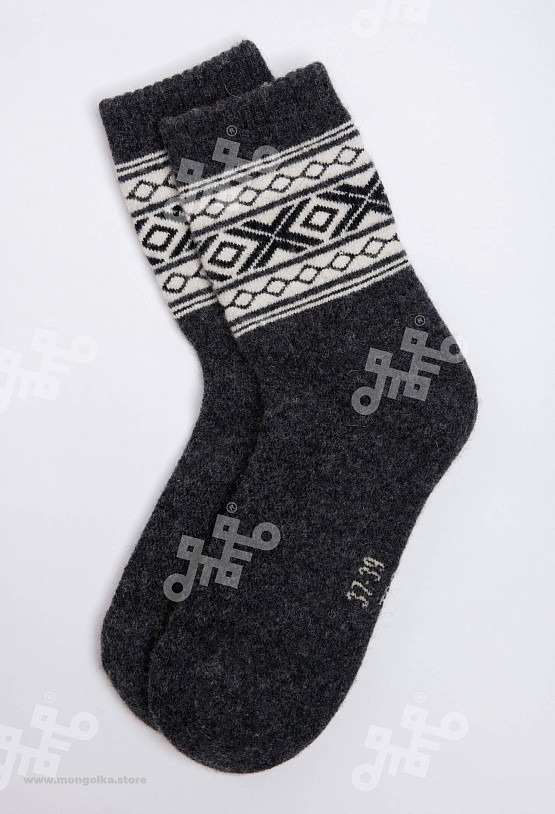 Носки из 100% натуральной шерсти монгольской овцы подарят ногам тепло и уют. Теплые носки плотно облегают стопу, хорошо фиксируются и не спадают при носке. На подошве используется технология двойной в... Показать описаниеязки, благодаря которой носки прослужат и согреют вас долгое время. В составе носков 100% натуральной овечьей шерсти, которая обладает обезболивающими, антибактериальными, противовоспалительными свойствами, из-за чего носки помогут при болях в суставах и усилят микроциркуляцию крови. Благодаря свойствам натуральной шерсти носки отводят лишнюю влагу и подарят чувство тепла и сухости в любую погоду. Шерстяные носки хорошо сочетаются с любым образом, поэтому в них будет приятно ходить как дома, так и надевать с зимней обувью. Носки подойдут как мужчинам, так и женщинам и станут приятным подарком для близких. В нашем ассортименте вы найдете еще больше товаров из натуральной шерсти, доставленных напрямую из Монголии. * Производитель: Монголия, TOD * Состав: 100% шерсть * Размер: 34-45 * Цвет: серый с рисунком * Полноразмерные, соответствуют размеру обуви * Укрепленная стопа