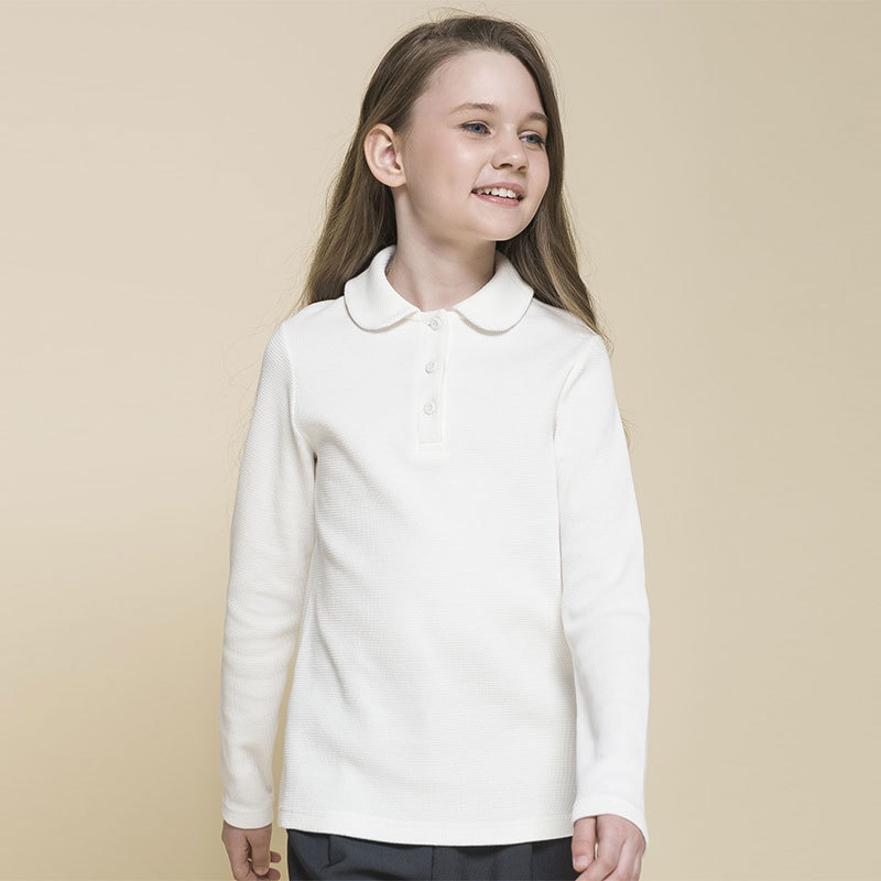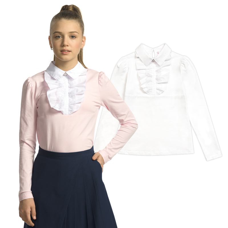 Состав: 95%хлопок 5%эластанОписание: Трикотажный джемпер прилегающего силуэта для девочки. Приятный на ощупь, с большим содержанием хлопка в составе, гигроскопичный и простой в уходе вафельный трикота... Показать описаниеж. В джемпере комфортно в течение всего дня, ничего не давит, не колет, не сковывает движения. Модель с аккуратным отложным воротничком со скруглёнными концами застёгивается по центру на три пуговицы — ребёнку удобно надевать и снимать джемпер через голову. Пуговицы тон в тон с матовым покрытием софт-тач — тактильно приятные и добавляют модели элегантности. Лаконичный дизайн лонгслива позволяет сочетать его с различными моделями школьной формы: юбками, брюками, сарафанами. Модный и практичный вариант одежды для школы.