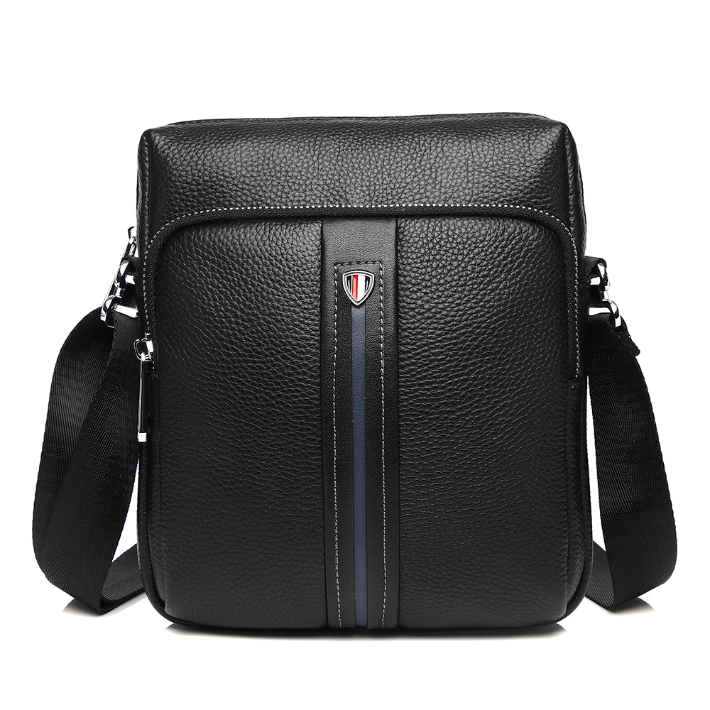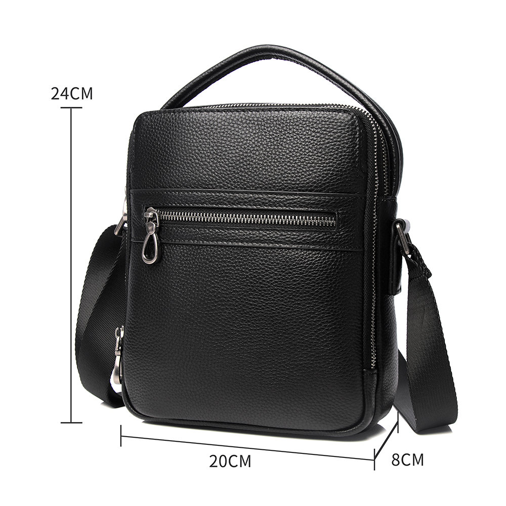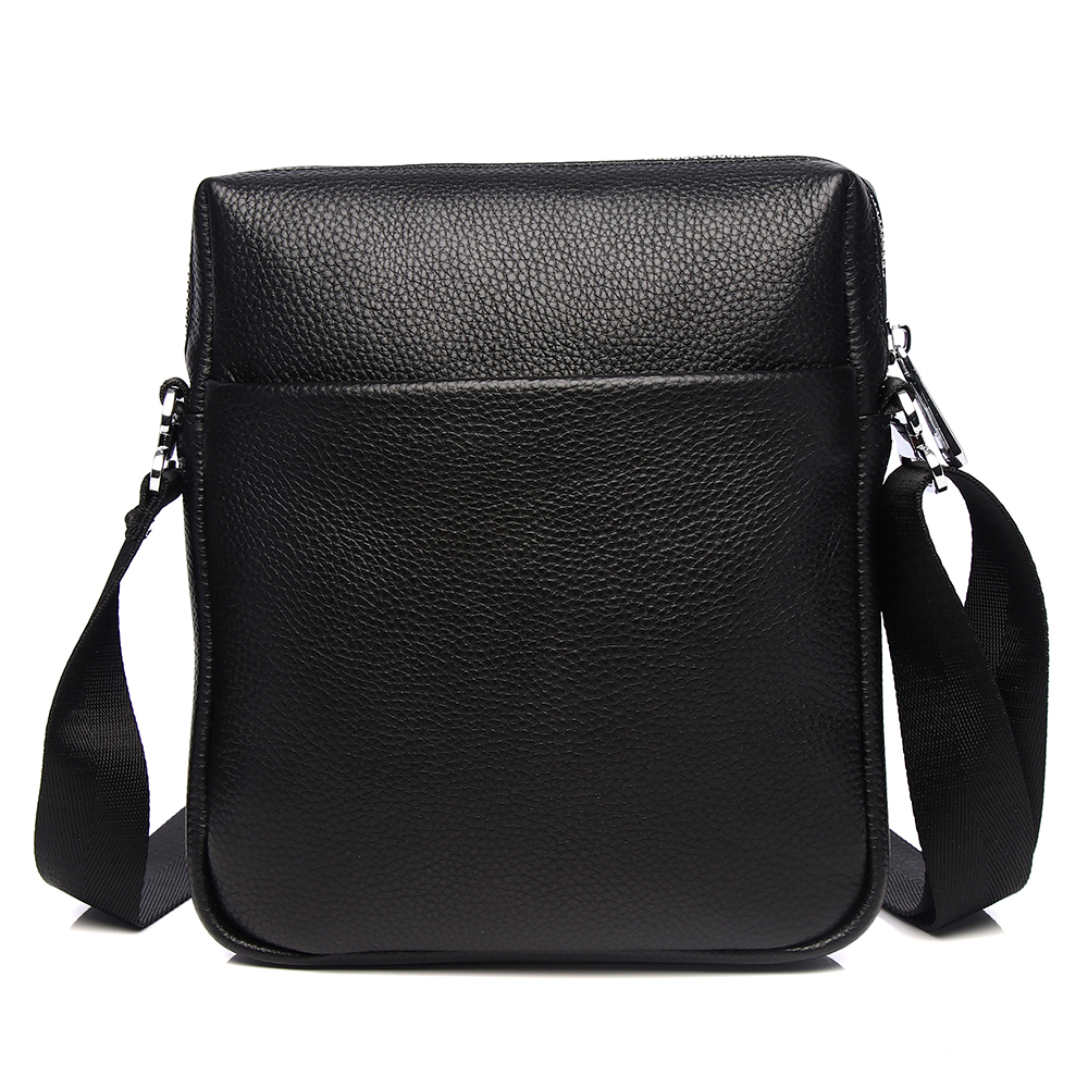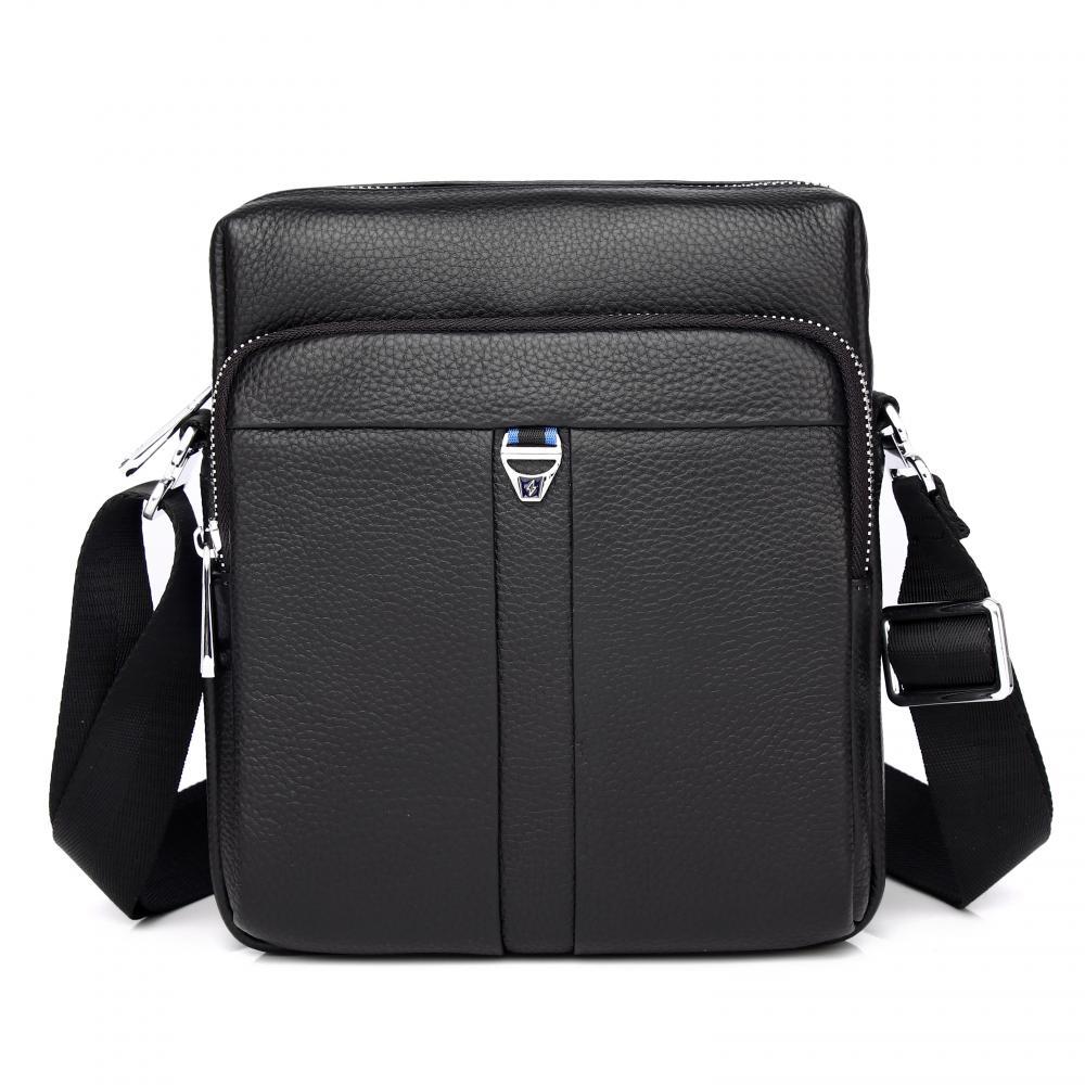 Классическая мужская сумка на плечо MIRONPAN выполнена из натуральной зернистой кожи в черном цвете. Основное отделение закрывается на полукруглую молнию с кожаным поводком. Внутри есть 2 боковых карм... Показать описаниеана для мелочей: открытый и на молнии. На лицевой стороне расположен вместительный карман на молнии, на тыльной стороне также предусмотрен карман быстрого доступа. Плечевой ремень регулируется по длине, ширина - 4 см. Цвет фурнитуры - серебро. Вес 500 Размер 19 х 21 х 4,5 (длина х высота х ширина)