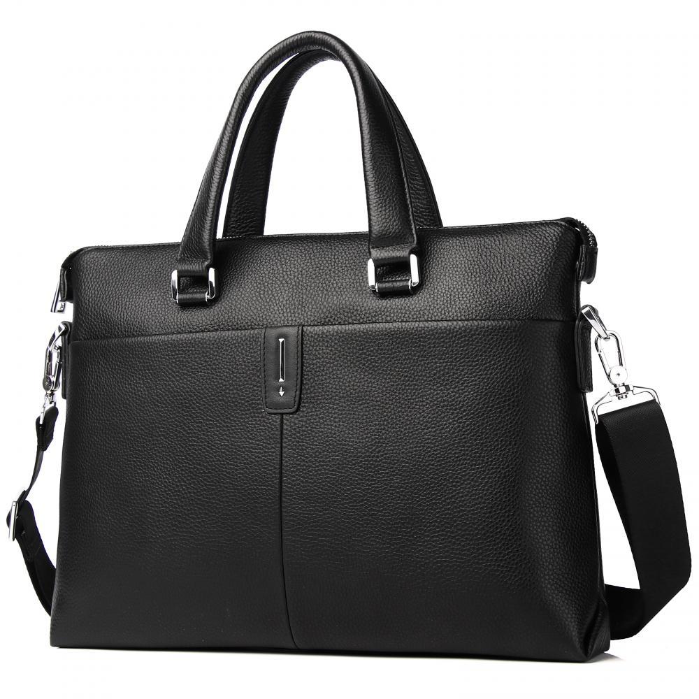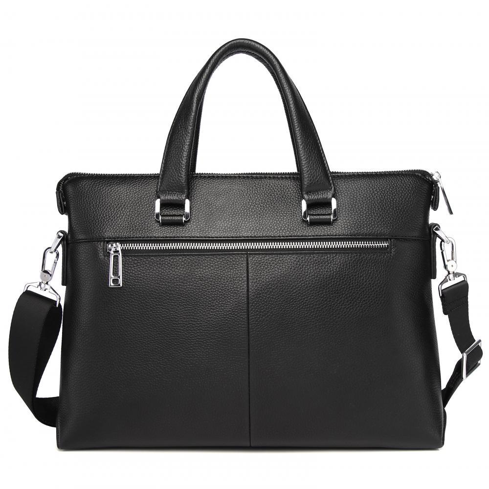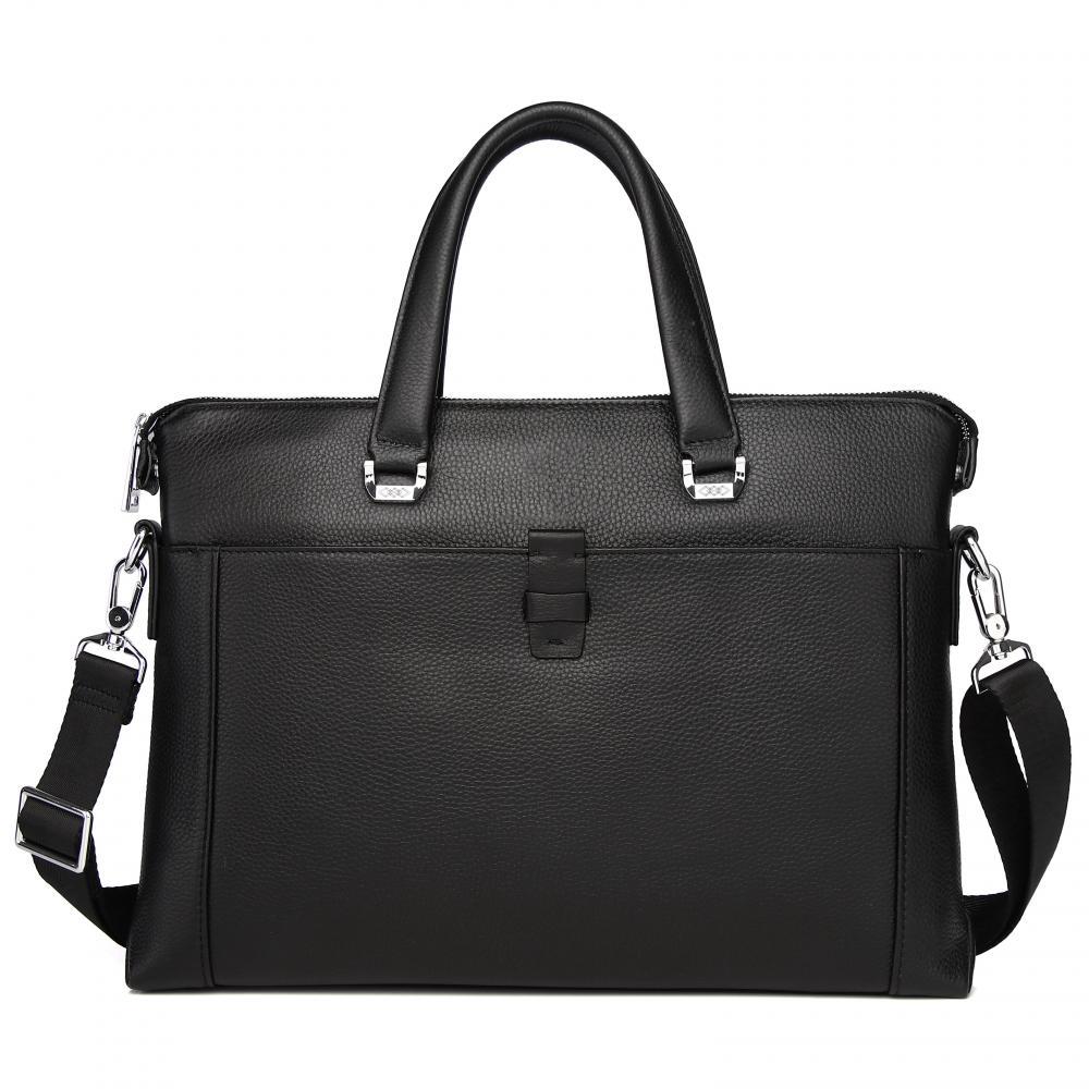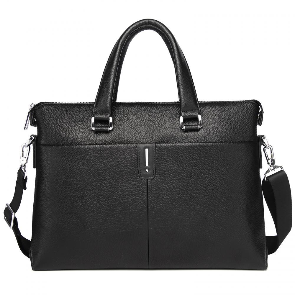 Стильная мужская сумка для документов MIRONPAN выполнена из натуральной зернистой кожи черного цвета. Модель имеет две ручки и съемный плечевой ремень, длина которого регулируется, ширина - 4 см. На т... Показать описаниеыльной стороне также предусмотрен карман быстрого доступа на молнии. Основное отделение закрывается на молнию с кожаным поводком. Внутри расположены органайзер для ручек, а также секция с мягкой стенкой для гаджетов. Сумка вмещает формат А4. Цвет фурнитуры - серебро. Вес 1110 Размер 38,5 х 27 х 6 (длина х высота х ширина)