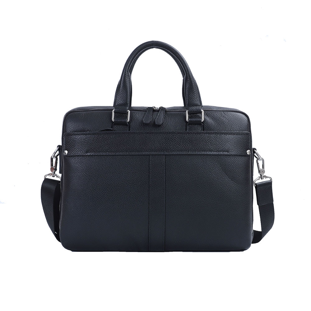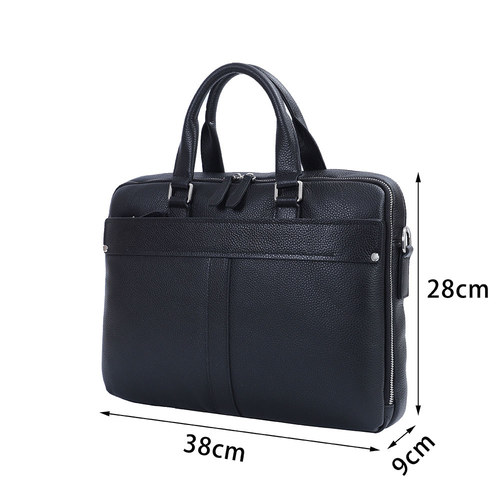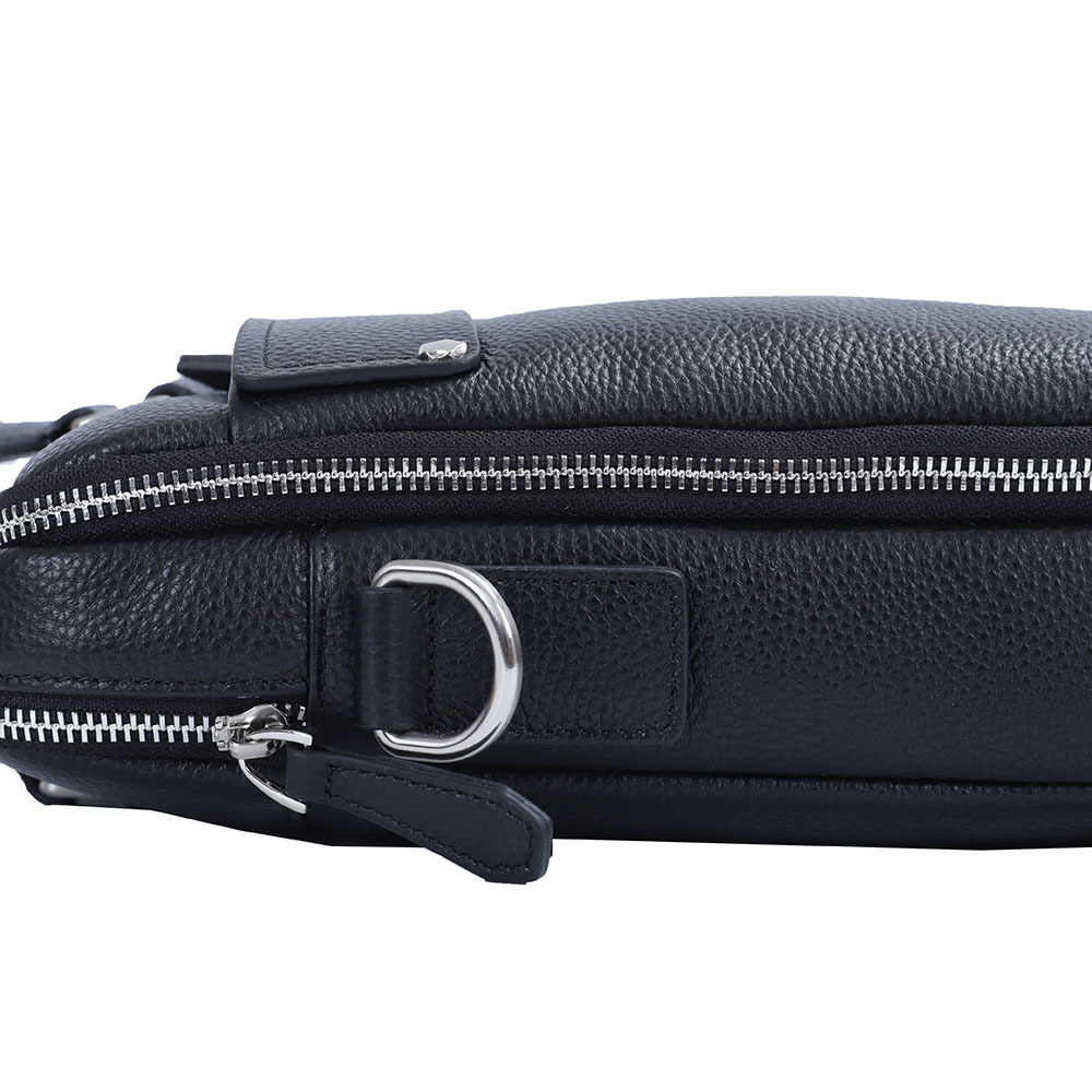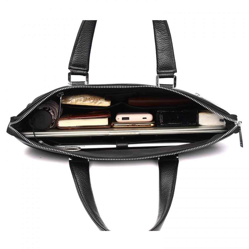 Стильная мужская сумка для документов MIRONPAN выполнена из натуральной зернистой кожи черного цвета. Модель имеет две ручки и съемный плечевой ремень, длина которого регулируется, ширина - 4 см. На т... Показать описаниеыльной стороне также предусмотрен карман быстрого доступа на молнии. Основное отделение закрывается на молнию с кожаным поводком. Внутри расположены органайзер для ручек, а также секция с мягкой стенкой для гаджетов. Сумка вмещает формат А4. Цвет фурнитуры - серебро. Вес 1110 Размер 38,5 х 27 х 6 (длина х высота х ширина)