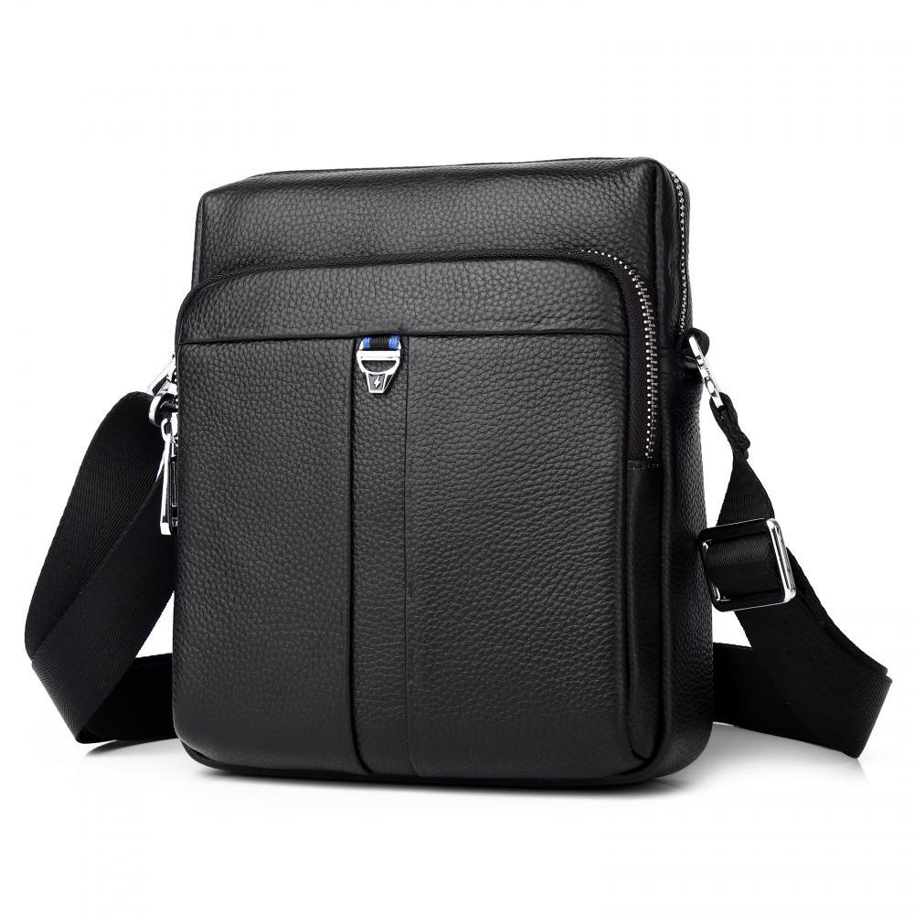Классическая мужская сумка на плечо MIRONPAN выполнена из натуральной зернистой кожи в черном цвете. В модели два отделения закрывается на полукруглую молнию с кожаным поводком. Внутри 2 боковых карма... Показать описаниена для мелочей: открытый и на молнии. На лицевой стороне расположен вместительный карман на кнопке и на тыльной стороне также предусмотрен карман быстрого доступа на кнопке. Плечевой ремень регулируется по длине, ширина - 4 см. Цвет фурнитуры - темное серебро. Вес 650 Размер 20 х 23 х 6 (длина х высота х ширина)