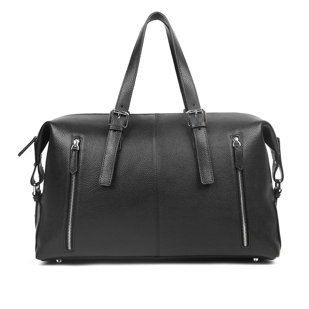 Вместительная сумка MIRONPAN в черном цвете выполнена из натуральной зернистой кожи отличается особой функциональностью. Она идеально подойдет для недолгих поездок , а также будет полезна при похо... Показать описаниеде в спортзал. Основное отделение закрывается на молнию. Внутри есть один боковой карман на молнии, а также секция с мягкой стенкой для гаджетов или документов. На лицевой и тыльной стороне есть вместительные карманы быстрого доступа закрываются на молнию. Дно сумки защищают 4 металлические ножки. В комплект входит съемный плечевой ремень, длина которого регулируется. Цвет фурнитуры - серебро. Вес- 1,350 Размер 45 х 26 х 17,5 (длина х высота х ширина)