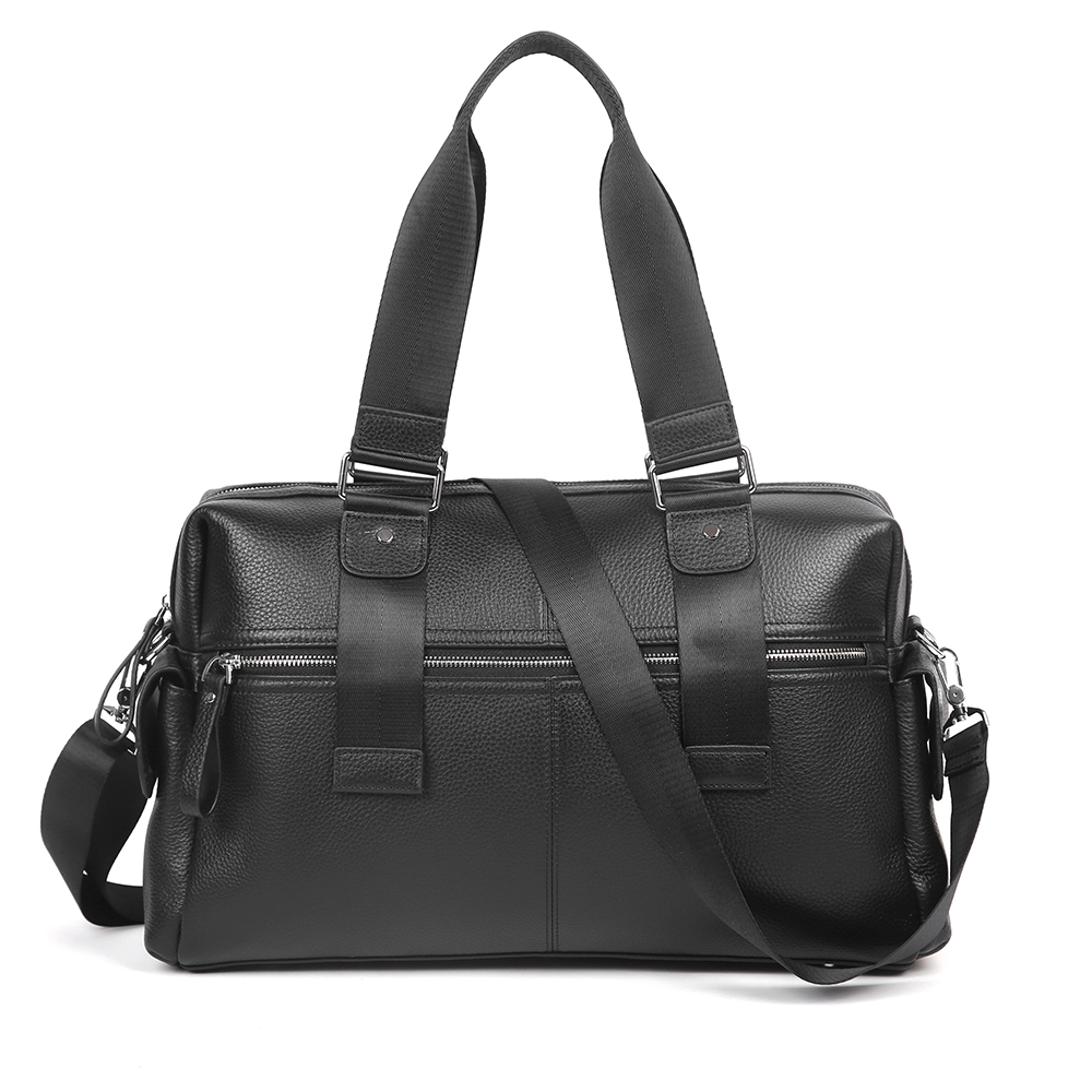 Вместительная сумка MIRONPAN в черном цвете выполнена из натуральной зернистой кожи отличается особой функциональностью. Она идеально подойдет для недолгих поездок , а также будет полезна при похо... Показать описаниеде в спортзал. Основное отделение закрывается на молнию. Внутри расположены 3 боковых кармана. На лицевой и тыльной стороне есть вместительные карманы быстрого доступа закрываются на молнию. На боковых стенках есть два накладных кармана , закрываются на молнию. Есть кожаное крепление для сумки на чемодан, В комплект входит съемный плечевой ремень, длина которого регулируется. Цвет фурнитуры - черное серебро. Вес- 1 650 Размер 40 х 27 х 19 (длина х высота х ширина)