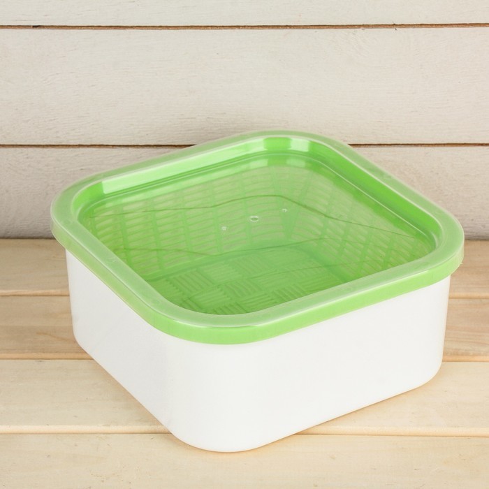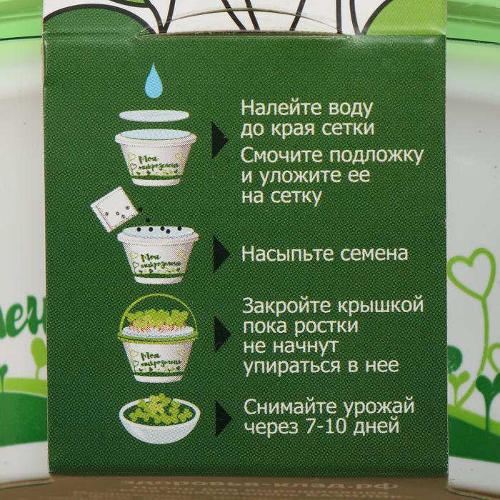 Универсальный проращиватель не требует подключения к электрической сети и прост в использовании. Подойдет каждому, кто предпочитает простые решения и планирует: * вырастить зелень; * получить качестве... Показать описаниенные пищевые проростки в домашних условиях; * вырастить зеленую травку для питомцев; * произвести предпосевную подготовку семян. Этапы выращивания микрозелени: * Установите корзинку на ёмкость, налейте воды, она должна соприкасаться с дном корзинки. * Насыпьте семена в корзинку, хорошо увлажните их из пульверизатора. * Закройте крышкой на 1-2 дня. После появления первых всходов снимите крышку. * Через 7-14 дней микрозелень готова к употреблению.